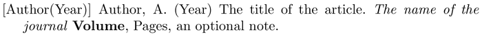 Example of a bibliography item for an article BibTeX entry.