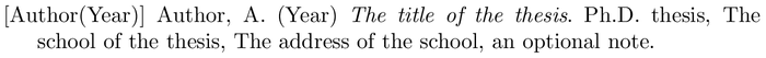 Example of a bibliography item for an phdthesis BibTeX entry.